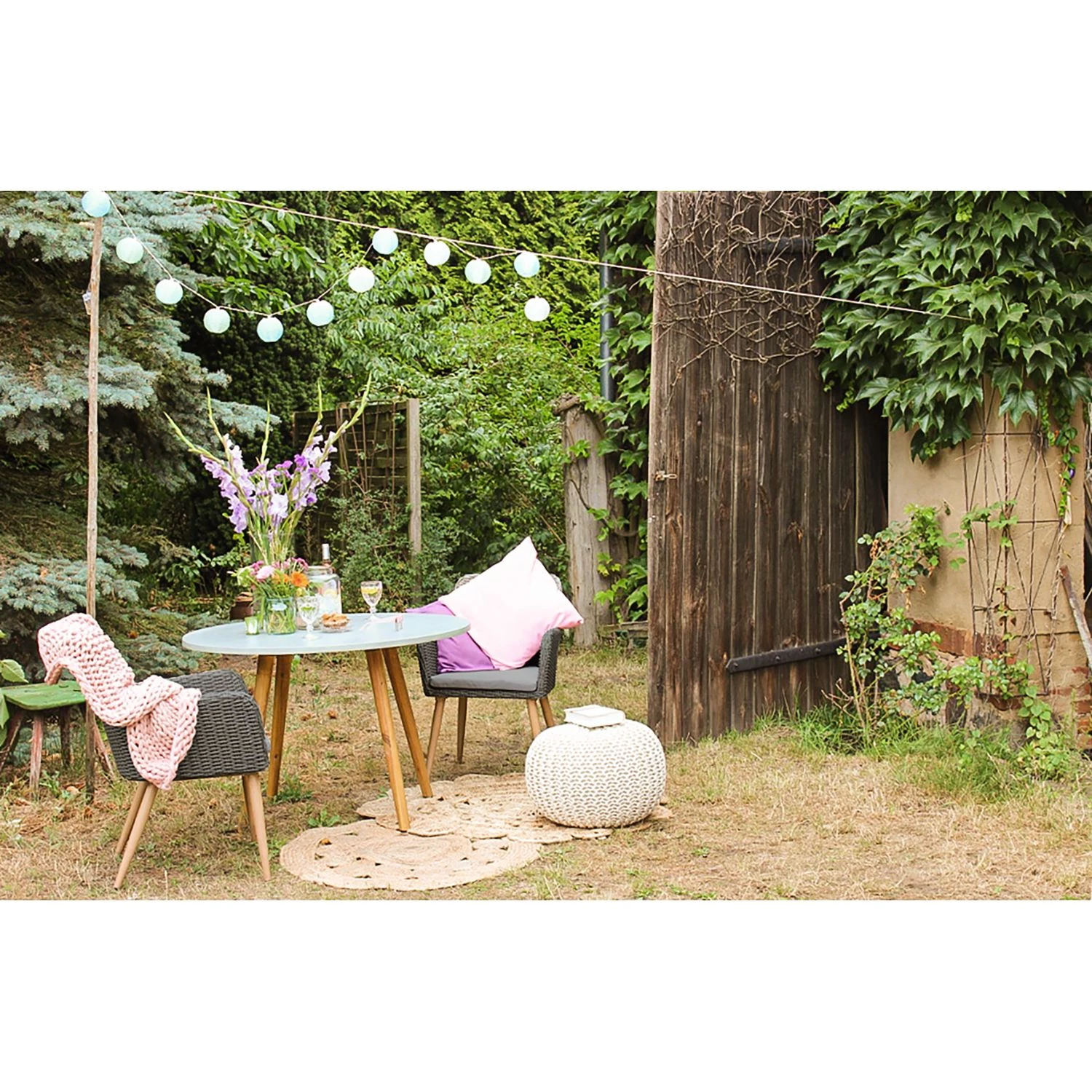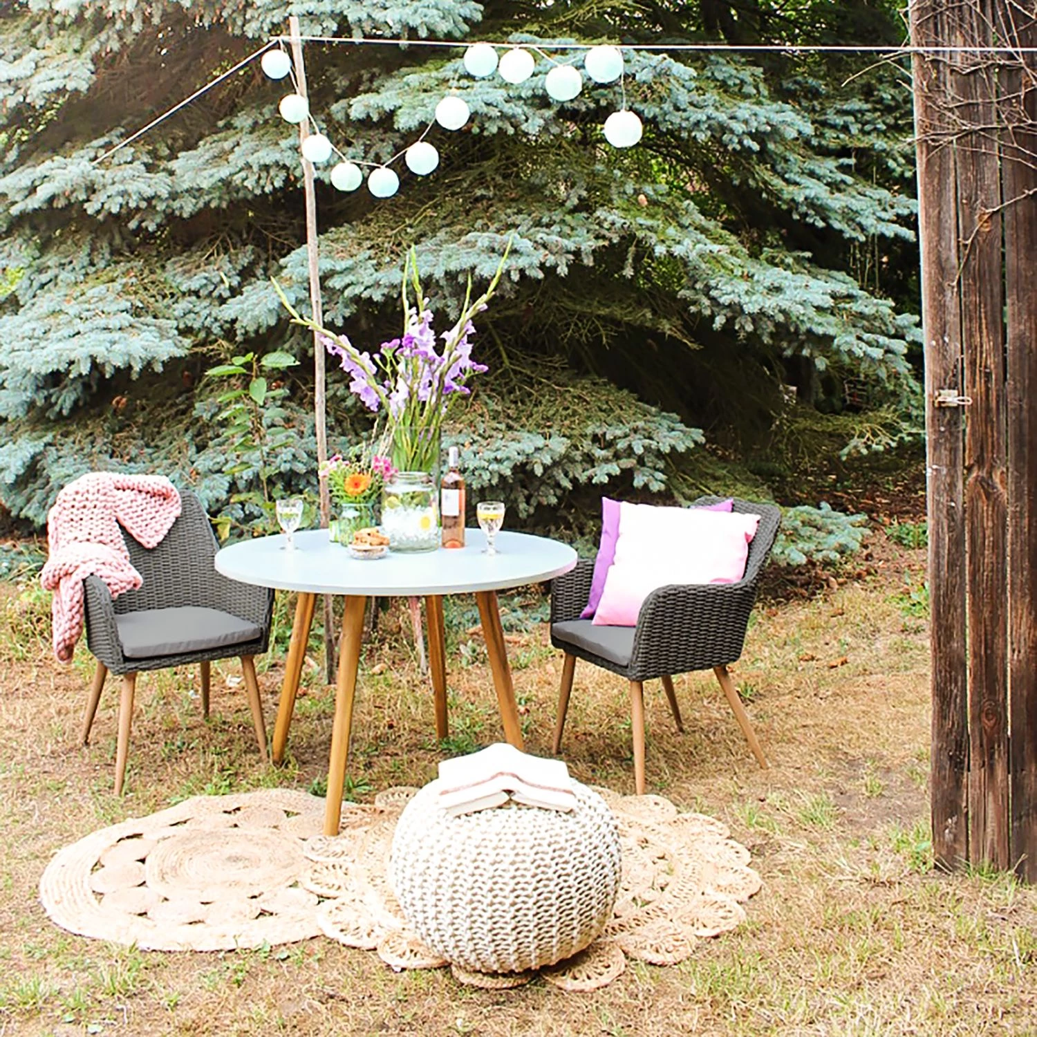 - Contenu de la livraison : lot de 2 chaises de jardin avec coussins d’assise, sans décoration