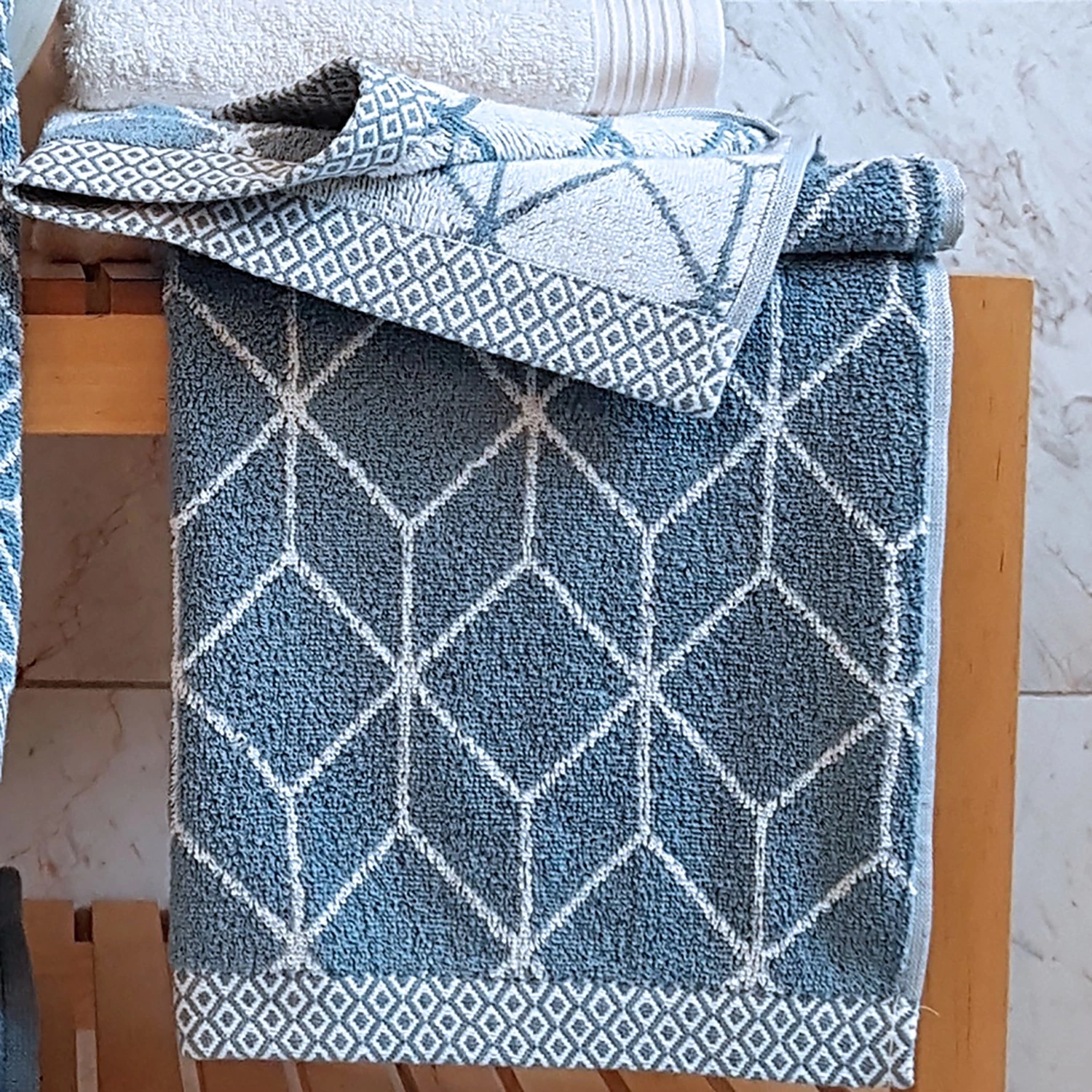 Harmonie de la forme et du DESIGN. Des lignes claires, des motifs abstraits et des contrastes forts : les motifs géométriques sont des valeurs sûres de la décoration, apportant du dynamisme à n’importe quelle pièce. Dans la série DESIGN de Framsohn Frottier, le style scandinave s’intègre parfaitement dans toutes les salles de bains grâce à son intemporalité. Les motifs graphiques subtils en gris, anthracite et bleu Niagara donnent une touche scandinave très appréciable à cette oasis dédiée au bien-être. L’ourlet tissé et à motifs donne également à ces serviettes une finition particulièrement élégante.